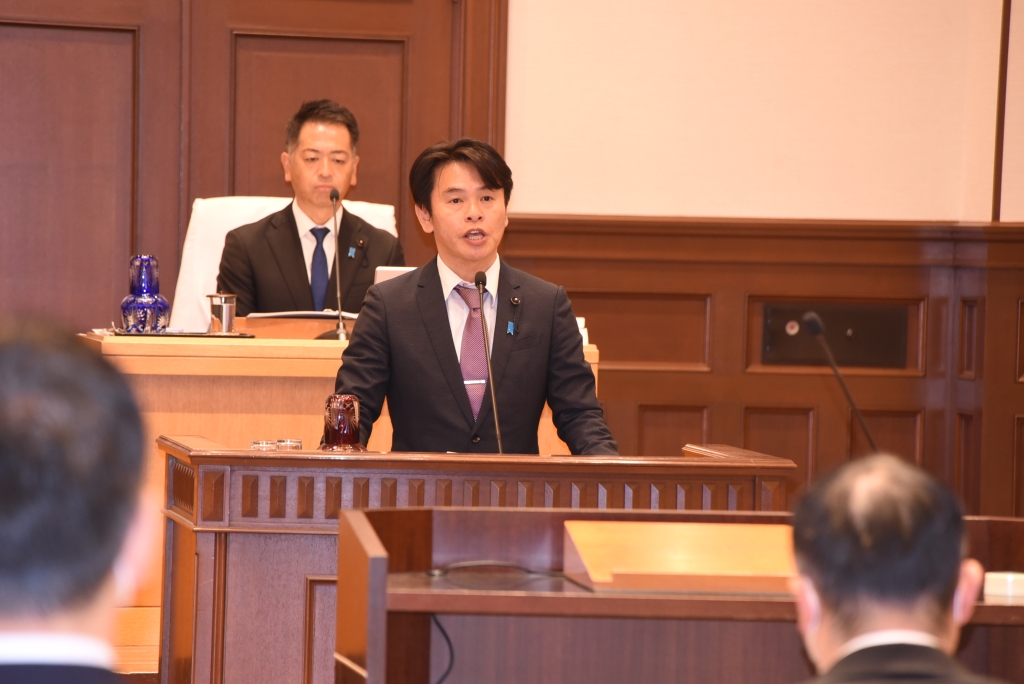 12日の本会議で自由民主党議員団の橘秀太郎副政調会長が質疑に立ち=写真=、補正予算編成の基本的な考え方を質問するとともに、補正予算に盛り込まれた